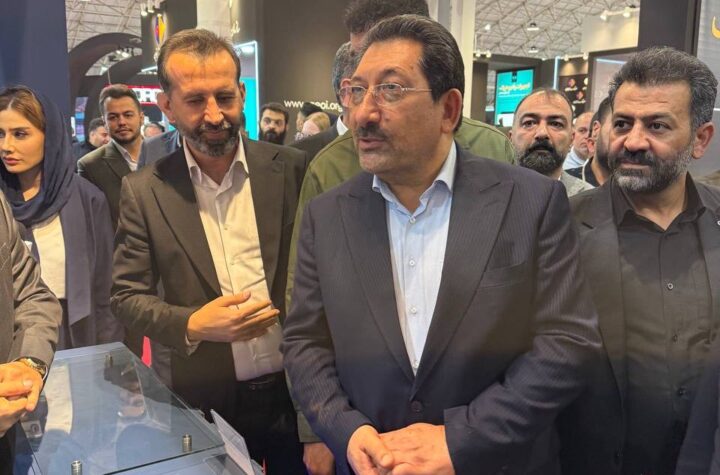 بامداد يزد_سید محمد اتابک وزیر صنعت، معدن و تجارت از غرفه چادرملو در نمایشگاه...